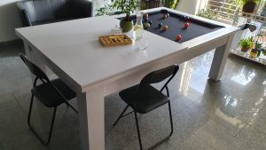 • Dodatkowym atutem w stole jest blat nakrywający (dwuczęściowy) uwzględniony w cenie stołu, jest on wykonany z płyty laminowanej.
