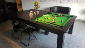 – Stół wyposażony jest w koszykowy systemem łapania bil.